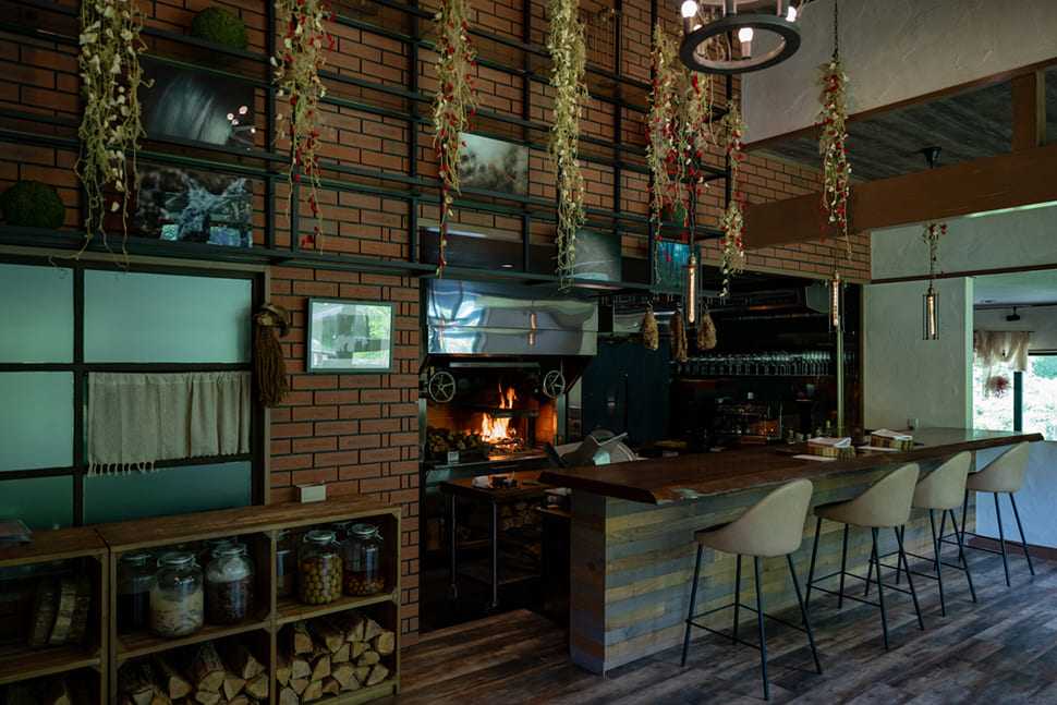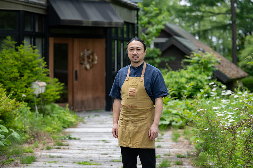 Although he seems to know Yatsugatake like the back of his hand, Usui was actually born and raised in Kanagawa Prefecture. After graduating from university, he decided to pursue a career as a chef and trained in several Italian restaurants in Tokyo. In 2009, he went to Italy to train further, returning to Japan in 2012. He worked as a chef in Tokyo restaurants, but his wish to create dishes in an environment rich in nature, like those of the restaurants in Italy where he had trained, grew ever stronger. Thus, in 2017, he moved to Nagano Prefecture, his wife’s home area. First he opened a restaurant in the Tateshina area, and in April 2020 he relocated to the city of Chino and launched Ca’enne, a restaurant specializing in firewood-cooked cuisine. Usui is the only chef. At lunchtime, his wife helps with meal service.