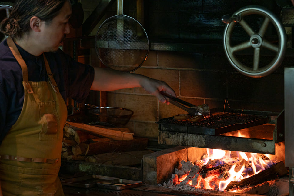 “I taught myself how to cook with firewood,” said Usui. “With firewood, unlike with a gas stove or a charcoal fire, the ingredients are steamed by the moisture that evaporates from the wood, so they have a plump, fluffy texture when they’re cooked.”