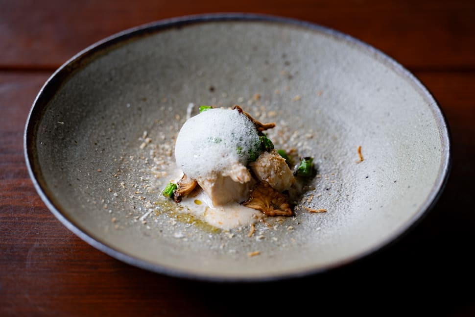 Usui cooks his ingredients with firewood, as the Jomon people did. Nearly all of the 10 dishes in the course menu — ¥17,600 ($117) at both lunchtime and dinnertime — come to the table enveloped, sometimes heavily and sometimes lightly, in the aroma of firewood.