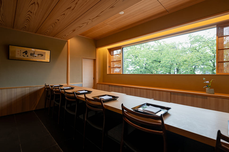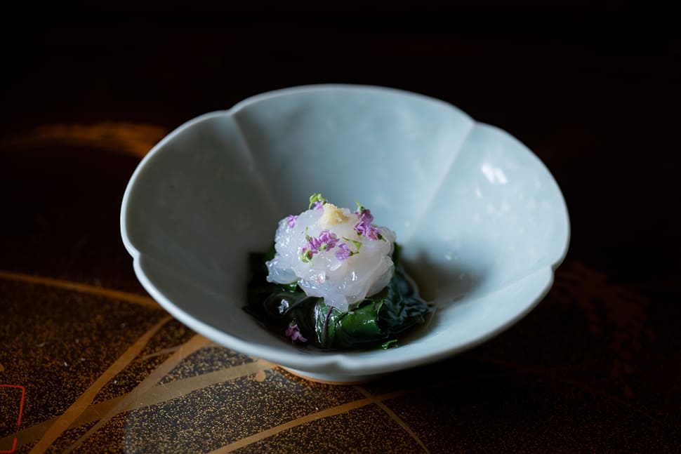 Ebitei-Bekkan is located on the bank of the Matsukawa River, one of Japan’s top 100 cherry blossom-viewing spots. Its predecessor was a traditional restaurant that opened in 1911 under the name Ebitei. The restaurant’s fourth-generation owner-chef is Kentaro Mura. After training at the restaurant Aoyagi in Tokushima Prefecture, Mura took over the family business in 2004 following the death of his father. Ebitei-Bekkan had previously been transformed from an inn to a restaurant and hosted weddings and banquets. He remodeled the restaurant in 2009 and changed its menu as well. The culinary style featuring simmered dishes (a foundation of Japanese cuisine) and matcha did not seem to go down well with the existing customer base, however, and business had declined sharply. Still, Mura’s cuisine gradually gained attention. After a famous guidebook bestowed a high rating and the opening of the Hokuriku Shinkansen train line brought more visitors to Toyama, business flourished. But in 2018, when the restaurant was on track to expand further, Mura closed its doors.