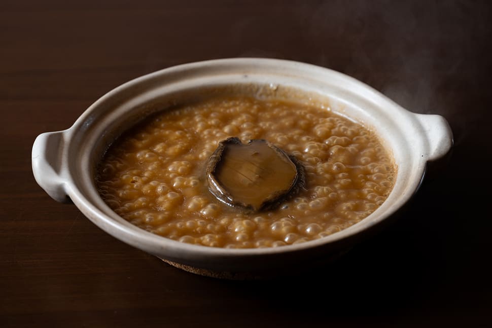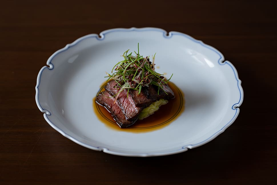 This cuisine steadily drew increased attention, and more guests came from outside the prefecture. Therefore, Kitagawa started consciously incorporating local specialties like Matsusaka beef, Ise-ebi and abalone into his course menu to spread the word about the attractions of Mie. Naturally, with the use of premium ingredients, the course price increased. The restaurant’s operation has changed as well. With the COVID-19 situation as a motivating factor, it began serving just one group per day on a reservation-only basis. Currently, the course menu price starts at ¥33,000 ($220).