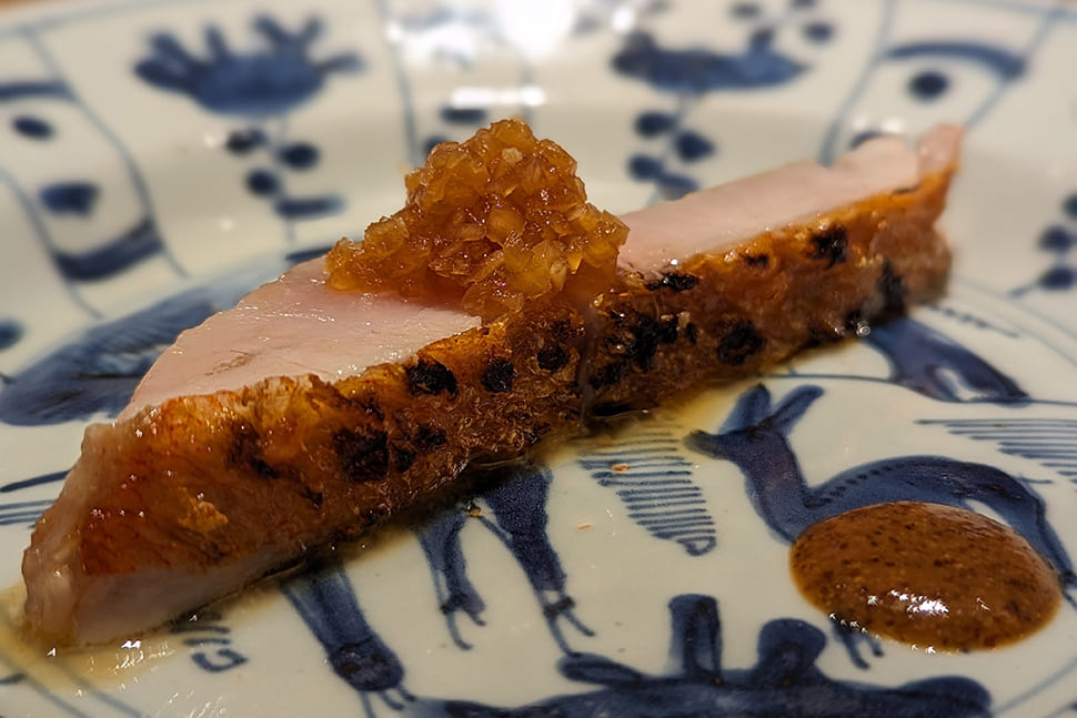 Takahira aspired to be a sushi chef from a young age. After acquiring Edomae-style sushi techniques at the restaurants Ginza Sushi Aoki and Sushi Yoshitake, both located in Tokyo’s Ginza district, he returned to his hometown in 2016. The following year he succeeded his father as chef at Kurumasushi, which he renovated in 2021. The restaurant suddenly became a Shikoku attraction, drawing gastronomes from outside the prefecture.