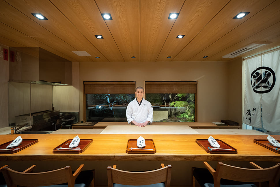 Proprietor Taizo Hirokado was born in Beppu. His father is a chef. After graduating from high school, he absorbed the fundamentals of Japanese cuisine at a traditional restaurant in Osaka. He then spent a year in Hiroshima, training in soba noodle-making at Daruma Sekkasanbo, a restaurant headed by soba master Kunihiro Takahashi. Starting in 2016, he worked in Tokyo for four years as second-in-command at a popular Japanese restaurant. In June 2021, he opened Nihon Ryori Beppu Hirokado.