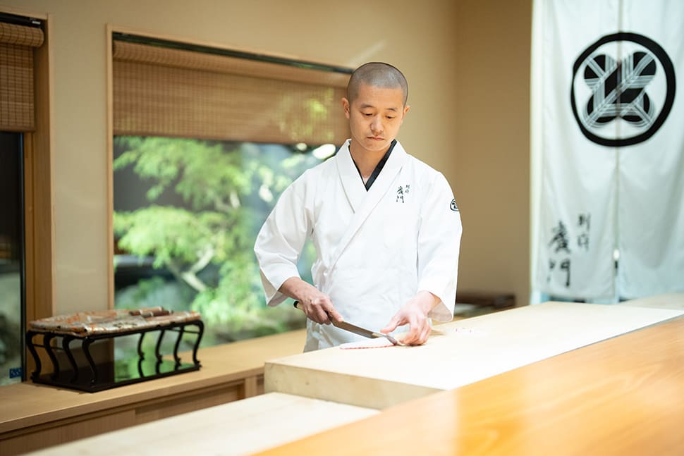 Hirokado said: “When I decided to set out on my own, I thought about how I could offer cuisine that would be unique to this location. I concluded that the only place where fish just out of the water can be served is the area where it’s sourced. Recently, aging fish has been popular as a cooking method, but I use fish taken from the market to the restaurant while still in seawater, in a living state.”