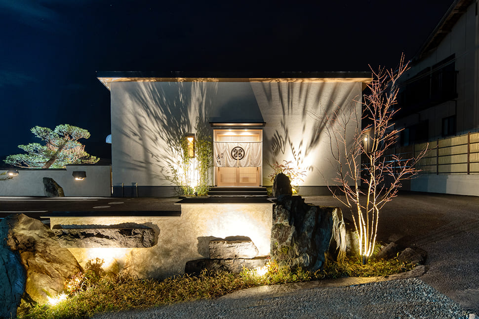 The city of Beppu, in Oita Prefecture, is one of Japan’s foremost hot spring locations. Boasting both Japan’s largest number of hot spring sources (about 2,600) and largest hot spring outflow, Beppu receives 8 million visitors each year. In the area around Beppu Station, it’s exciting just to walk through the bustling streets lined with casual eateries. Thanks to its location on Beppu Bay, the city is also blessed with abundant seafood. Due to these distinctive features, the number of fine-dining restaurants in Beppu is gradually increasing. A prime example is Nihon Ryori Beppu Hirokado, located on a mountainside about 20 minutes by car from the station.